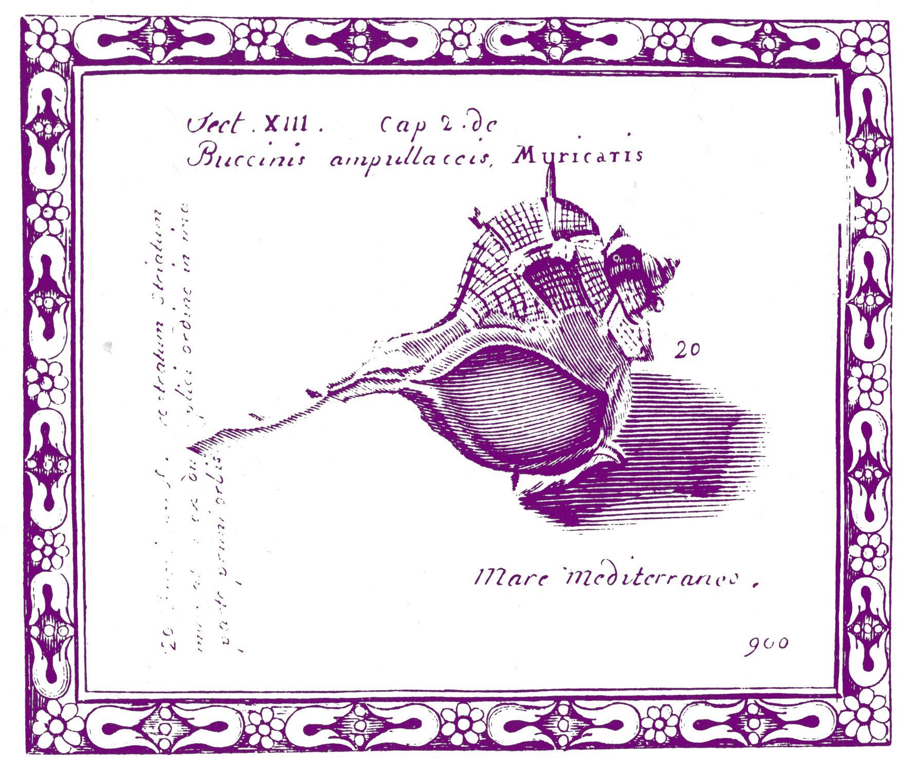 Murex brandaris- %22Tyrian Purple, also known as Royal Purple, is a pigment made form the mucus of a Murex brandaris gastropod, or Mediterranean sea snails.The became more brilliant in sun and weather exposure.%22 by leannarhodes